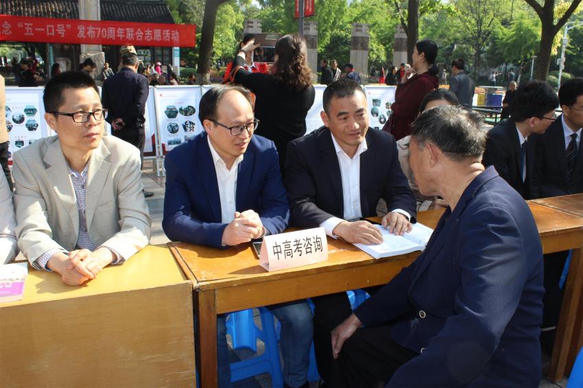 4月25日上午,中共江阴市委统战部组织的纪念“五一口号”发布70周年联合志愿活动在学院场举行。民盟江阴市委副主委邹凤翔与来自南菁支部、市中支部、二中支部的8位老师参加了此次志愿活动,主要是提供中高考咨询和心理咨询。